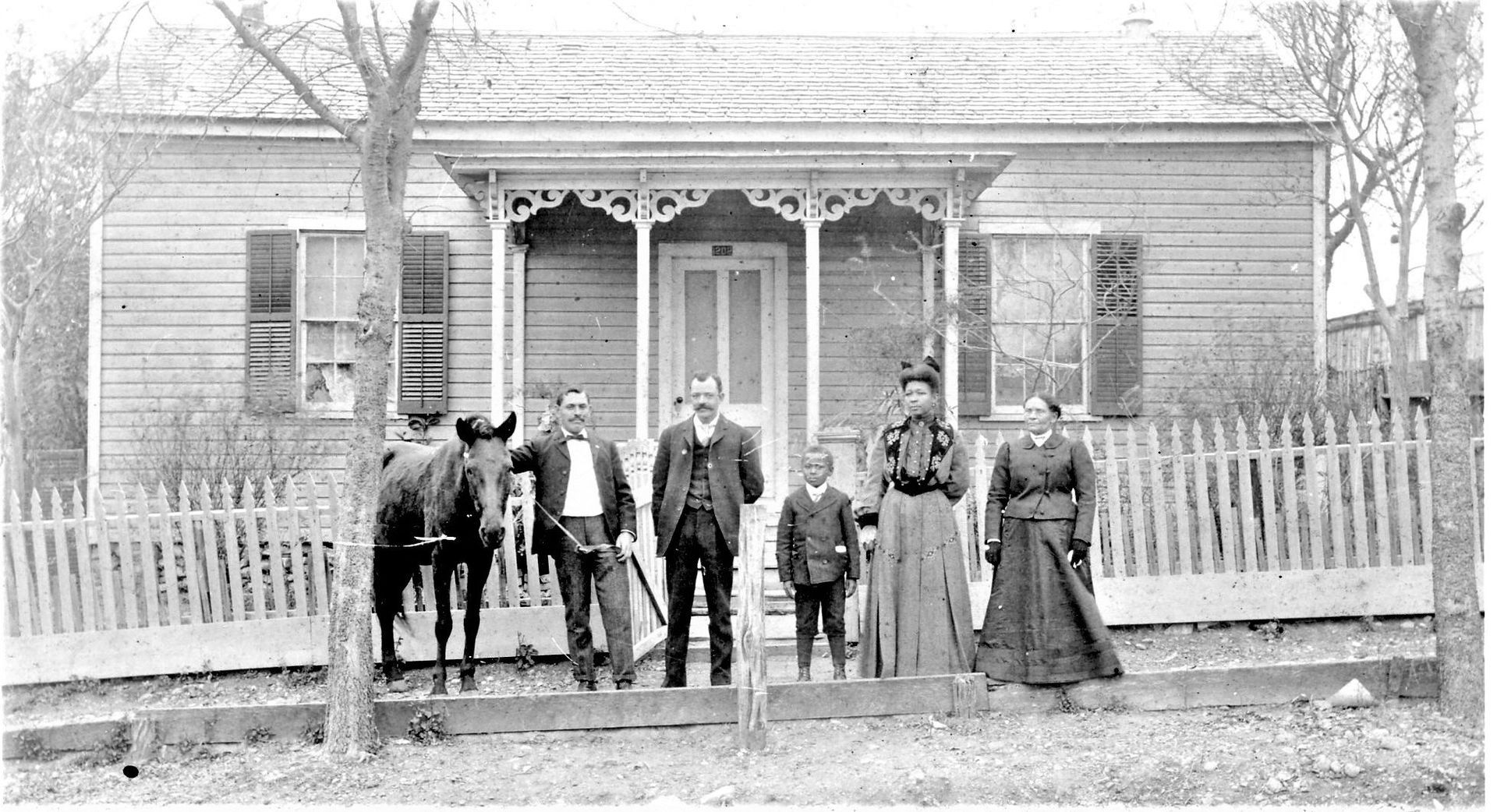 The Meroney Family in front of their house at 1202 Curve Street, Austin, Texas.